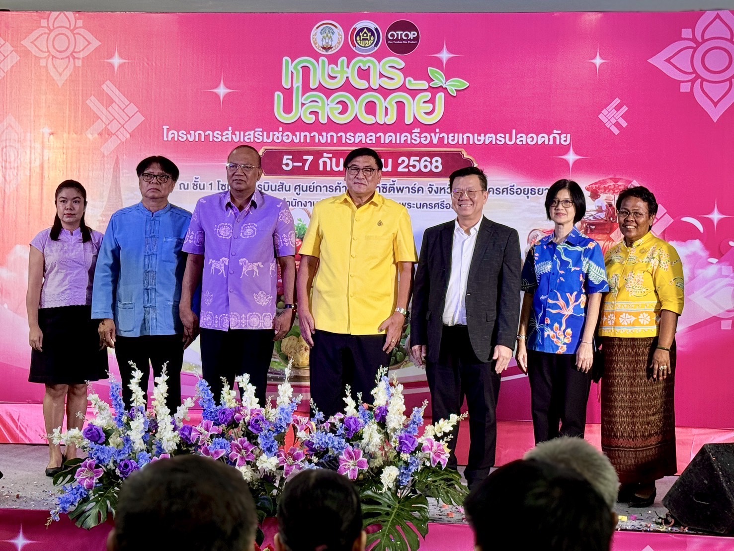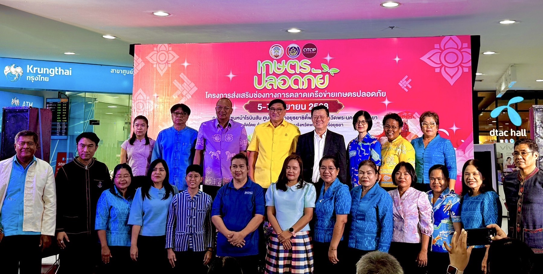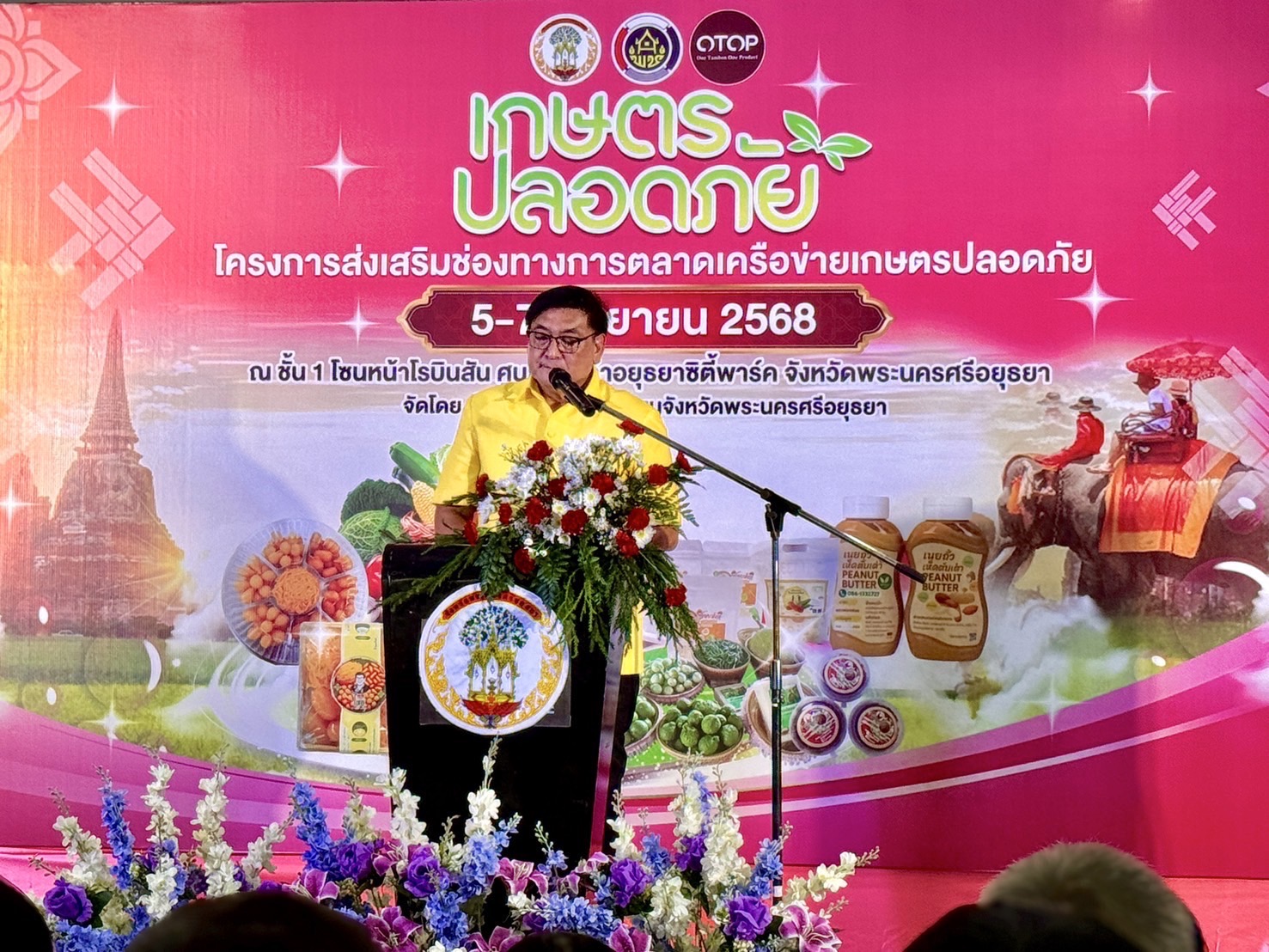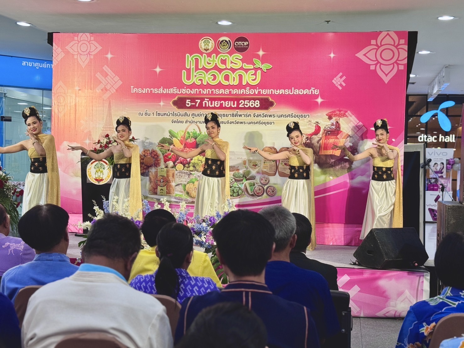 วันศุกร์ที่ 5 กันยายน 2568 เวลา 13.30 น. นายสมชาย เถื่อนสุวรรณ์ อุตสาหกรรมจังหวัดพระนครศรีอยุธยา มอบหมายให้นางสาวรัชกรณ์ ภู่อยู่ หัวหน้ากลุ่มส่งเสริมและพัฒนาอุตสาหกรรมและว่าที่ร้อยตรีหญิงชุติมา บุษบก เจ้าหน้าที่บริหารงานทั่วไป ร่วมพิธีเปิดโครงการส่งเสริมช่องทางการตลาดเครือข่ายเกษตรปลอดภัย ระหว่างวันที่ 5-7 กันยายน 2567 ณ บริเวณหน้าโซนโรบินสัน ศูนย์การค้าอยุธยาซิตี้พาร์ค โดยมีนายธีรศักดิ์ โฉมศิริ รองผู้ว่าราชการจังหวัดพระนครศรีอยุธยาเป็นประธานในพิธี