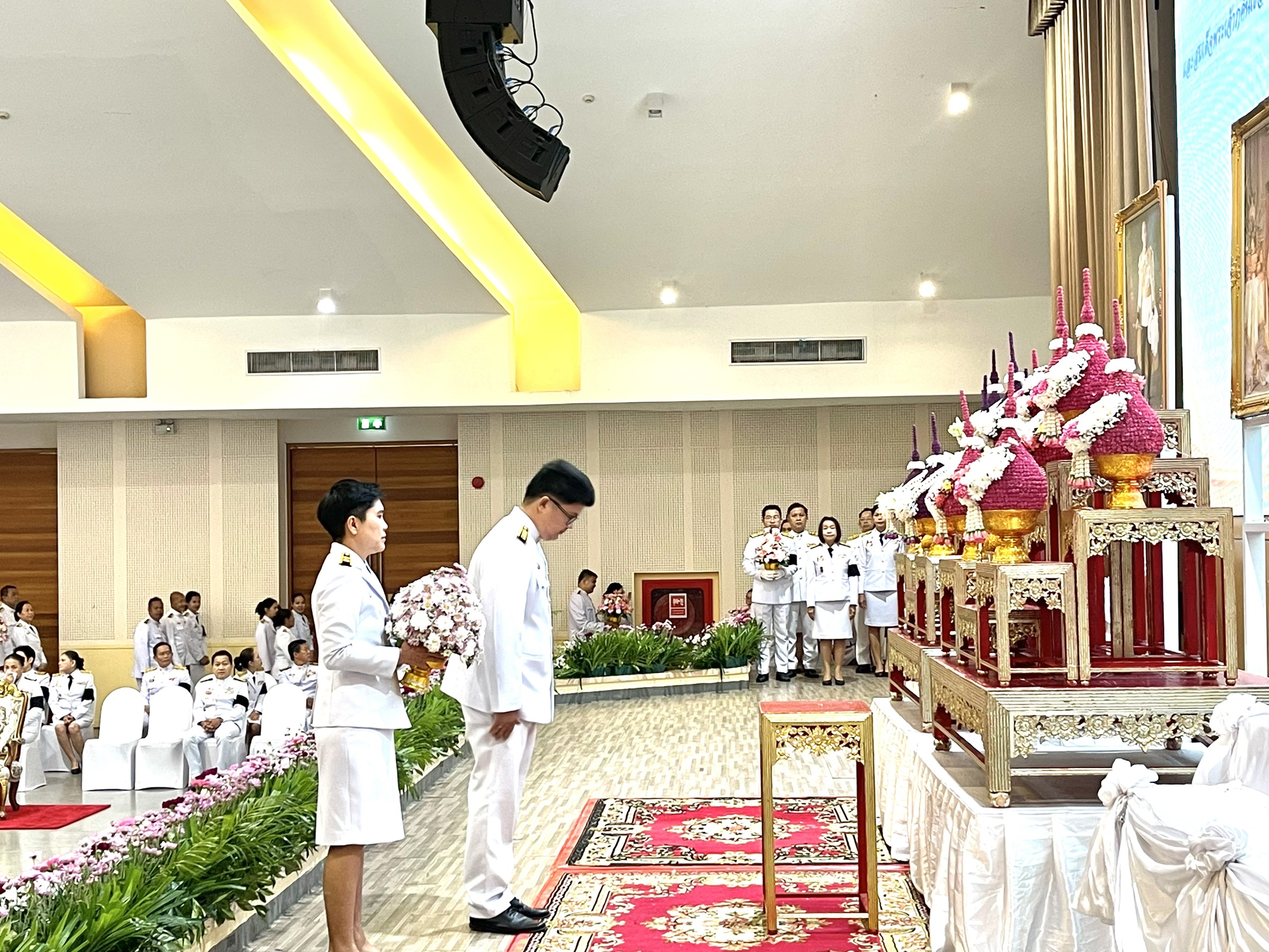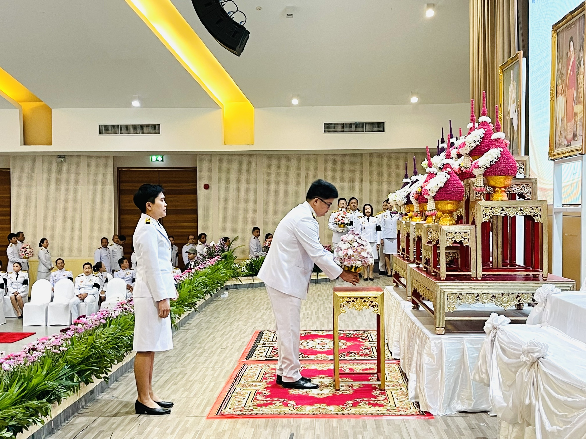 วันที่ 24 พฤศจิกายน 2568 เวลา 07.00 น. นายกิติพงศ์ อติชาติพงศ์กุล อุตสาหกรรมจังหวัดพระนครศรีอยุธยา มอบหมายให้ นายชัยวัฒน์ จุ้ยเจริญ วิศวกรปฏิบัติการ พร้อมด้วยเจ้าหน้าที่ สอจ.อย เข้าร่วมพิธีวางพานพุ่มดอกไม้ถวายสักการะสมเด็จพระเจ้าบรมวงศ์เธอ เจ้าฟ้าเพชรรัตน สิริโสภาพัณณวดี กรมพระนครปฐมบรมขัตติยานี มหาธรราชธิดา และทำบุญตักบาตรอุทิศถวายพระราชกุศล เนื่องในโอกาสวันคล้ายวันประสูติครบ 100 ปี ณ หอประชุมพระพิรุณระลึกโปรดเกล้าฯ มหาวิทยาลัยเทคโนโลยีราชมงคลสุวรรณภูมิ ศูนย์พระนครศรีอยุธยา หันตรา โดยมี นายชวนินทร์ วงศ์สถิตจิรกาล ผู้ว่าราชการจังหวัดพระนครศรีอยุธยา เป็นประธานในพิธี